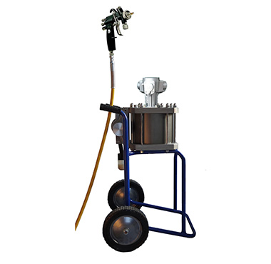 - 液料中含有懸浮分布的顆粒物,顆粒物的粒徑較大,有明顯的顆粒質感,此種液料用常規的噴槍無法噴涂,必須選擇專用的含顆粒液料噴涂設備。含顆粒液料噴涂設備有特殊的機械設計:主機液料泵具備大排量抽吸的功能,能抽送比重較大的含固體顆粒的液料;主機液料泵具備耐磨的功能;噴槍具備高霧化的性能并有良好的顆粒通過性;具備特殊的管路和特殊的輔助連接裝置。