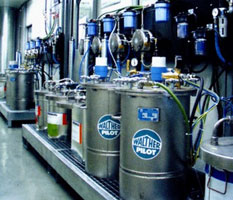本公司非標工程設備包括大型液料輸送系統和各種噴房。大型供料輸送系統包括各種高壓中壓和低壓集中泵送系統,管道系統,控制系統,攪拌系統等。大型集中供漆系統將幾十臺輸送泵和攪拌系統集中安裝于調漆房,統一集中管理和控制,再由管道系統分配到每個噴房和每把噴槍。由于油漆分配,油漆攪拌調漆,泵送,控制都集中在調漆車間嚴格管理,統一控制,免除在噴涂車間搬運和灌裝油漆所帶來的火花和靜電危險,并節省小批次頻繁調漆所浪費的大量人工,同時保證了產品涂層的一致性。非標工程設備要到實地觀測廠房情況才能醞釀安裝和布局思路,結合用戶需求最終得出系統方案。